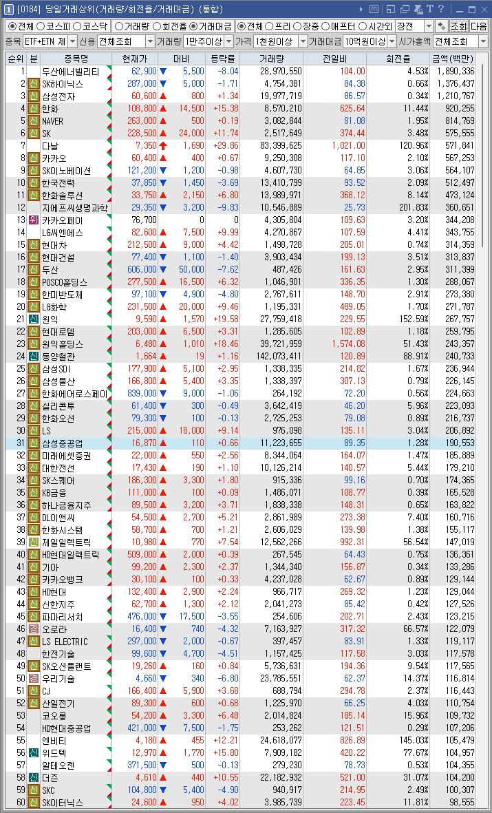 한화 | 15.38 | 899,713 | 입장 뒤집은 국민의힘 ‘전향적 검토’에 상법 개정 급물살 소식 속 지주사 테마 강세 |