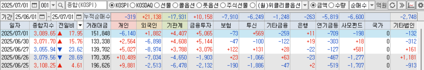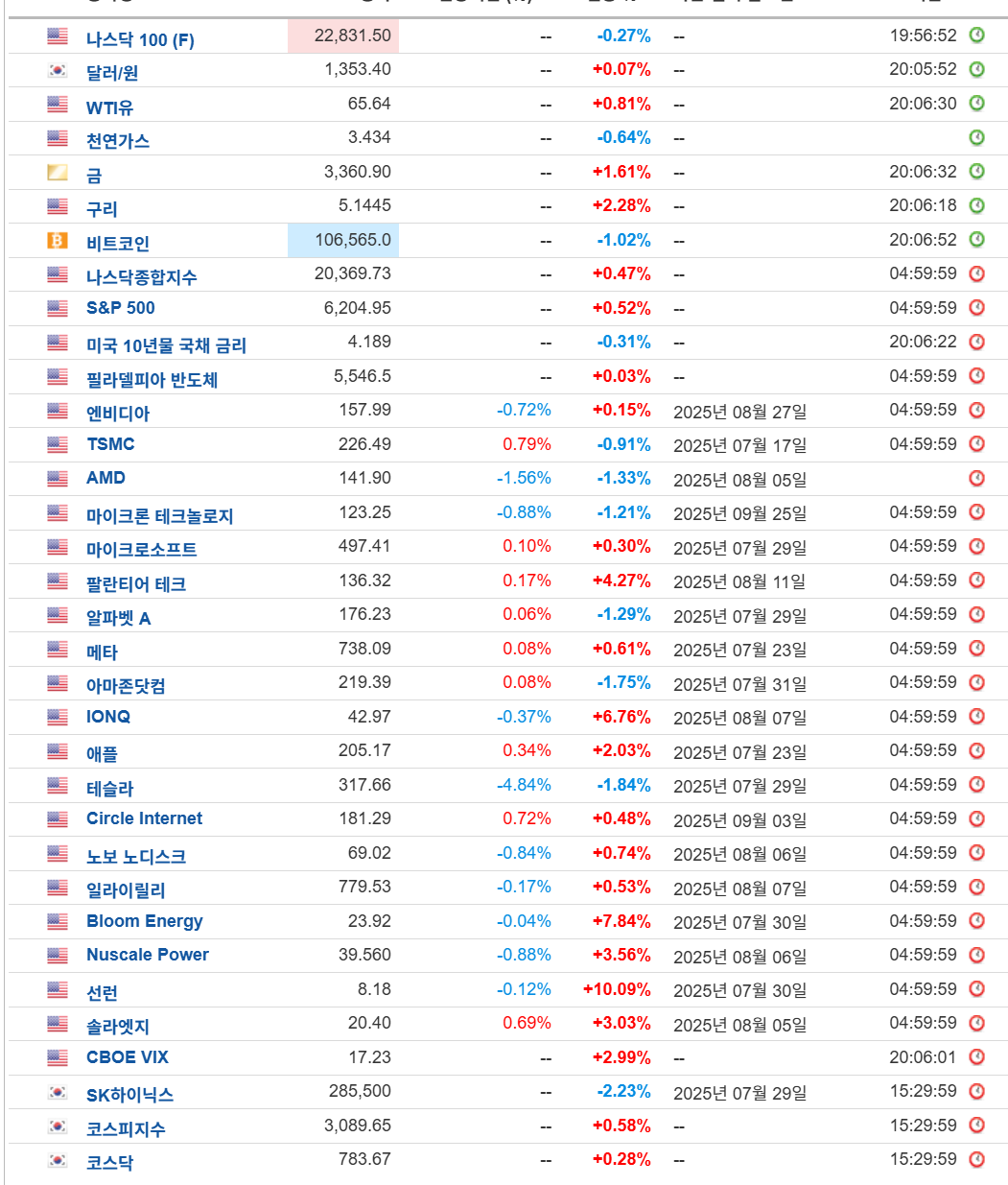 2025년 7월 4일(금) 관세 유예 종료 등 여러 일정 부담에 시장 하락 (0) | 2025.07.05 |