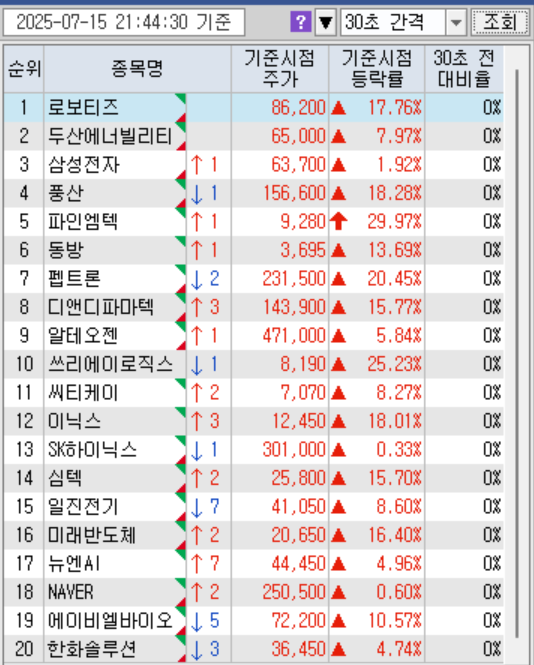 장 초반 바이오, 원전 섹터에 돈이 들어가는 흐름 이후 바이오에서는 디앤디파마텍이 큰 상승후 눌림 횡보했으며 원전에서는 두산에너빌리티가 하루종일 강한 수급이 들어오며 상승, 방산주가 부각되며 풍산이 상승했고 오후에는 로봇주에서 로보티즈가 뉴스뜨며 급등했음. 스테이블코인 관련 뉴스가 계속 떴지만 종목들은 반응이 약했다