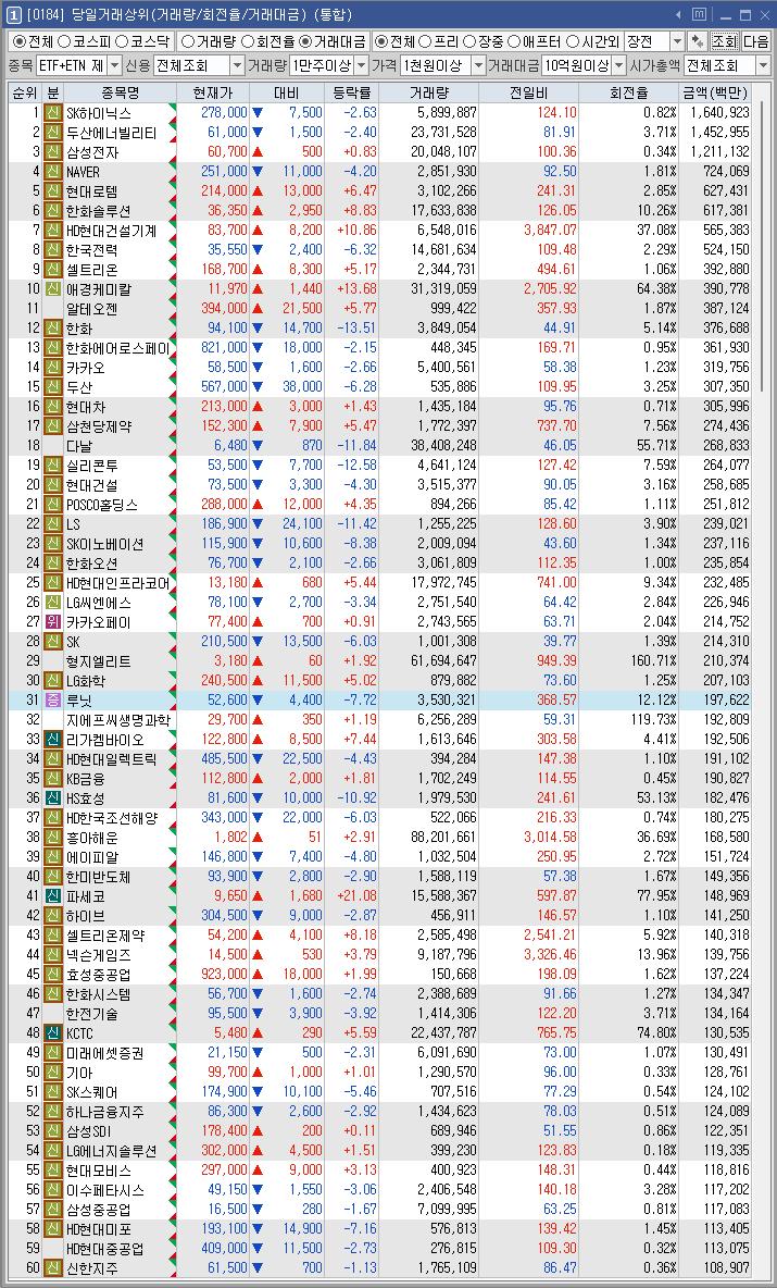 형지글로벌 | 29.96 | 35,922 | 스테이블코인 사업 진출 소식에 강세 |