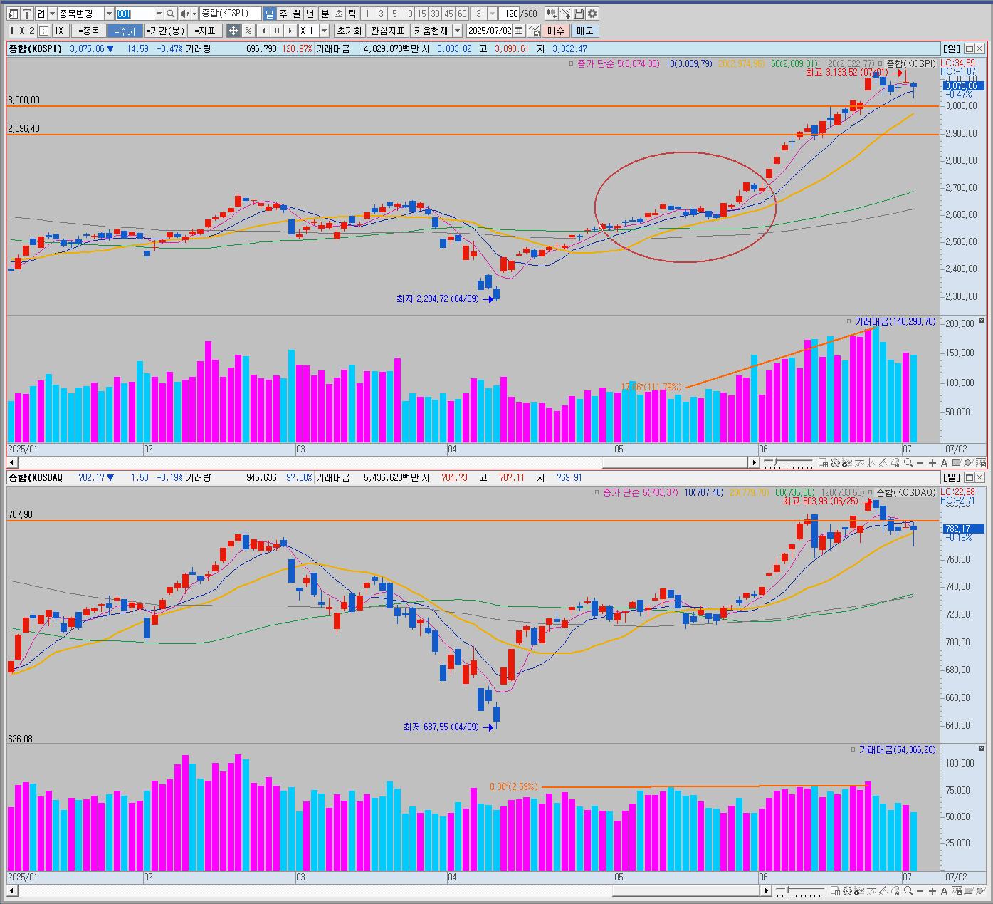 2025년 7월 3일(목) 지수를 올리던 종목들 하락하며 빈자리를 채운 종목들, 순환매 (0) | 2025.07.03 |