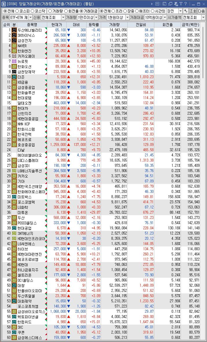오전 10시정도까지의 흐름은 나쁘지 않은편이었으나 이후 흐름이 좋지 않았고 시장의 거래대금도 줄었음