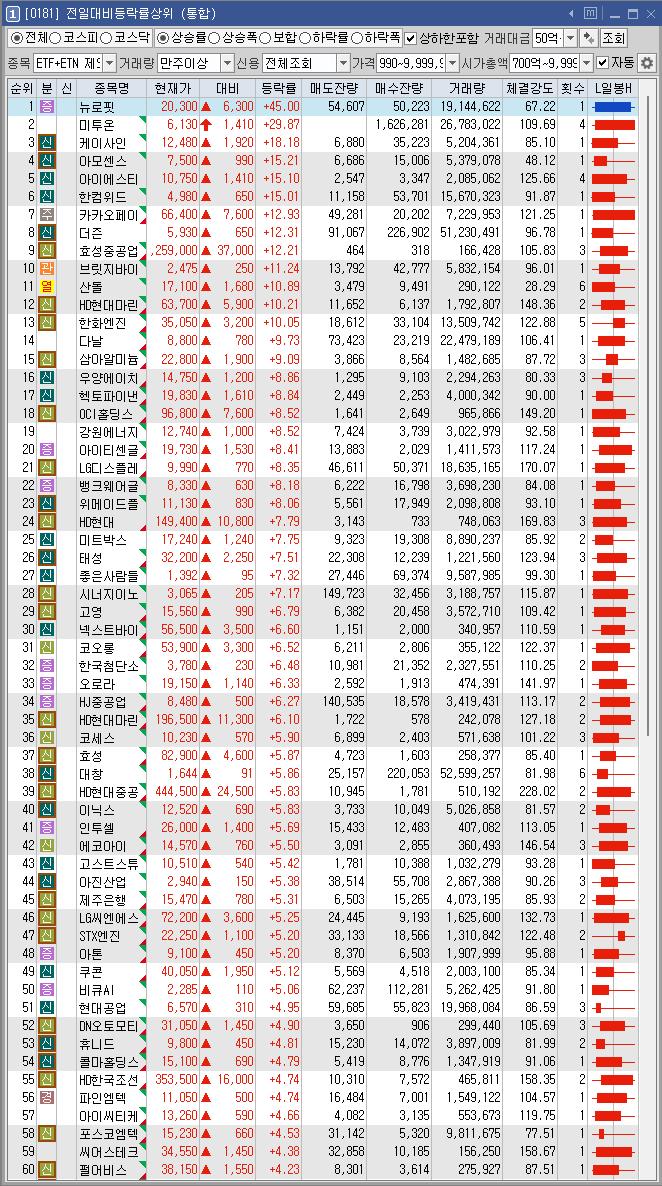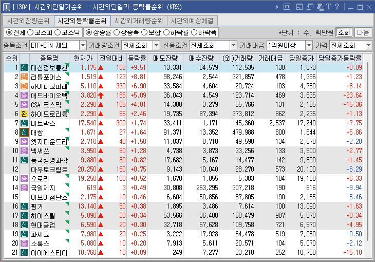 안오르던 후발주들도 가벼운 슈팅이 나왔음