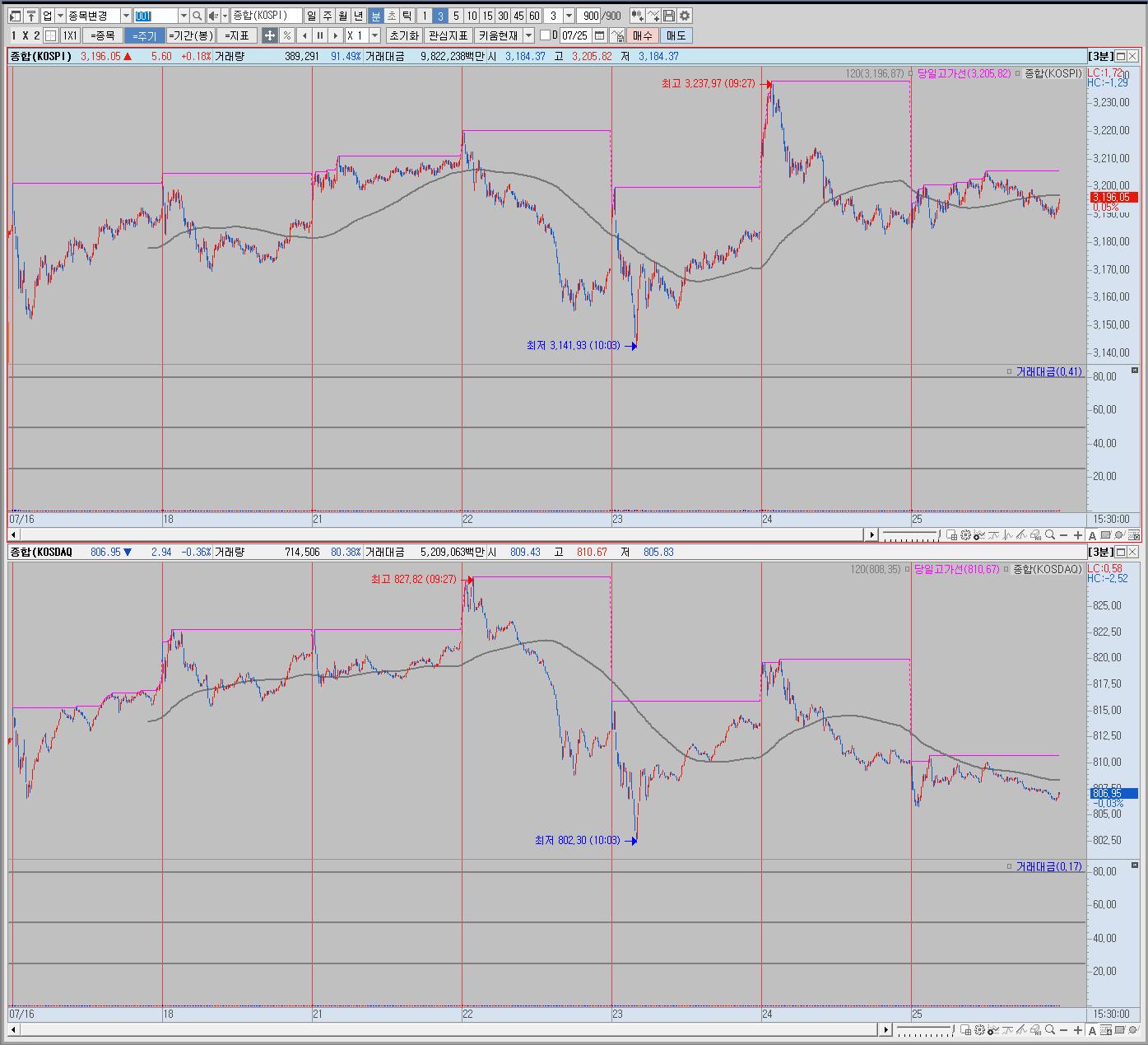 코스피는 약보합 출발해서 횡보, 코스닥은 좀 더 빠지는 느낌