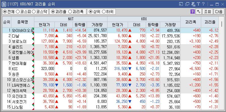 이렘 | 13.43 | 6,852 | 韓, 알래스카 LNG 사업 참여 기대감 지속 '美표준 ASTM' STS 공급 부각 강세 |