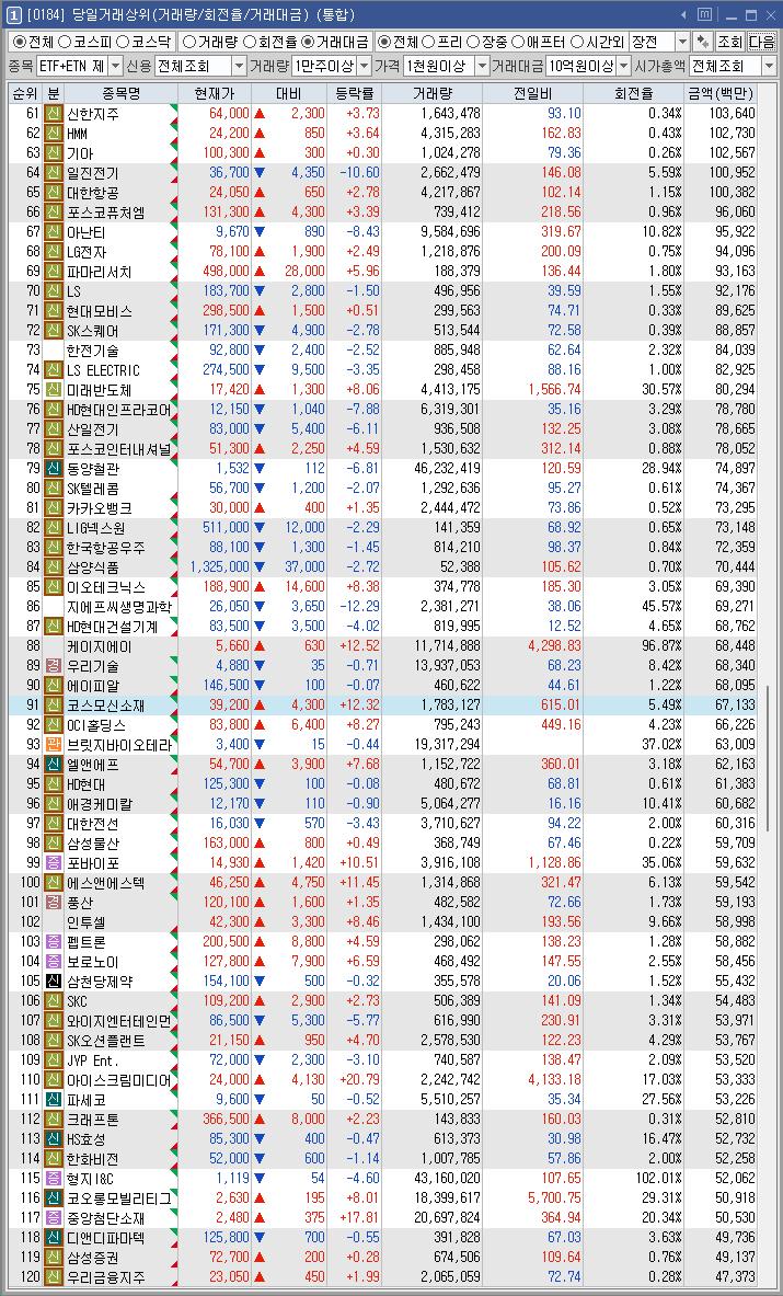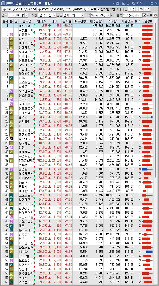 이스트아시아홀딩스 | 30.00 | 14,953 | 25대 1 주식 병합 소식 지속 |