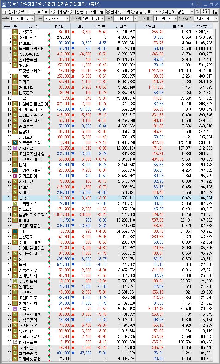 미국 베트남과의 무역 합의가 삼성전자에 이로울것이라는 판단에서인지 삼성전자가 강세를 보이며 거래대금 3조 돌파